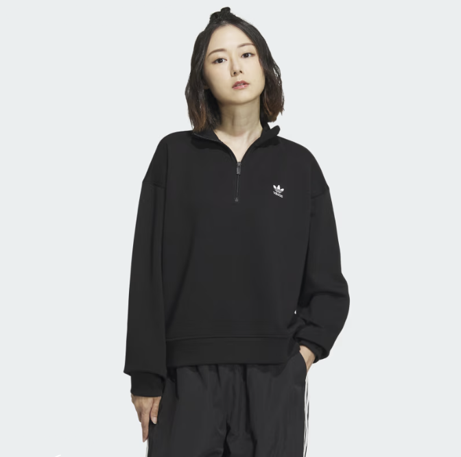 Esta sudadera adidas con cremallera hasta el pecho destaca por su tejido de felpa cómodo y suave. Presenta un corte holgado y puños de canalé que te brindan una mayor calidez. Ya sea sola o combinada con otras capas, esta prenda versátil añade un toque informal a tus looks diarios.